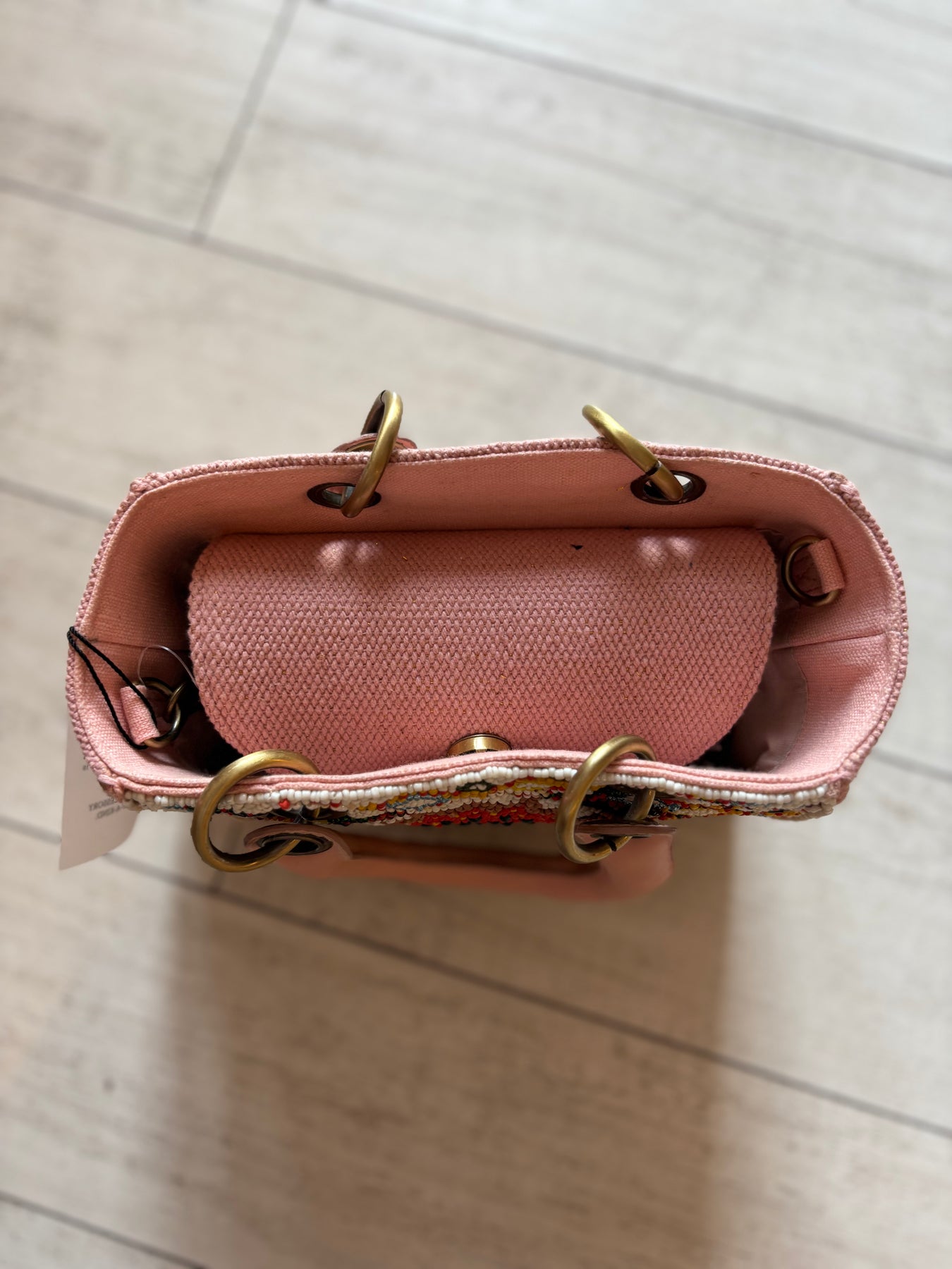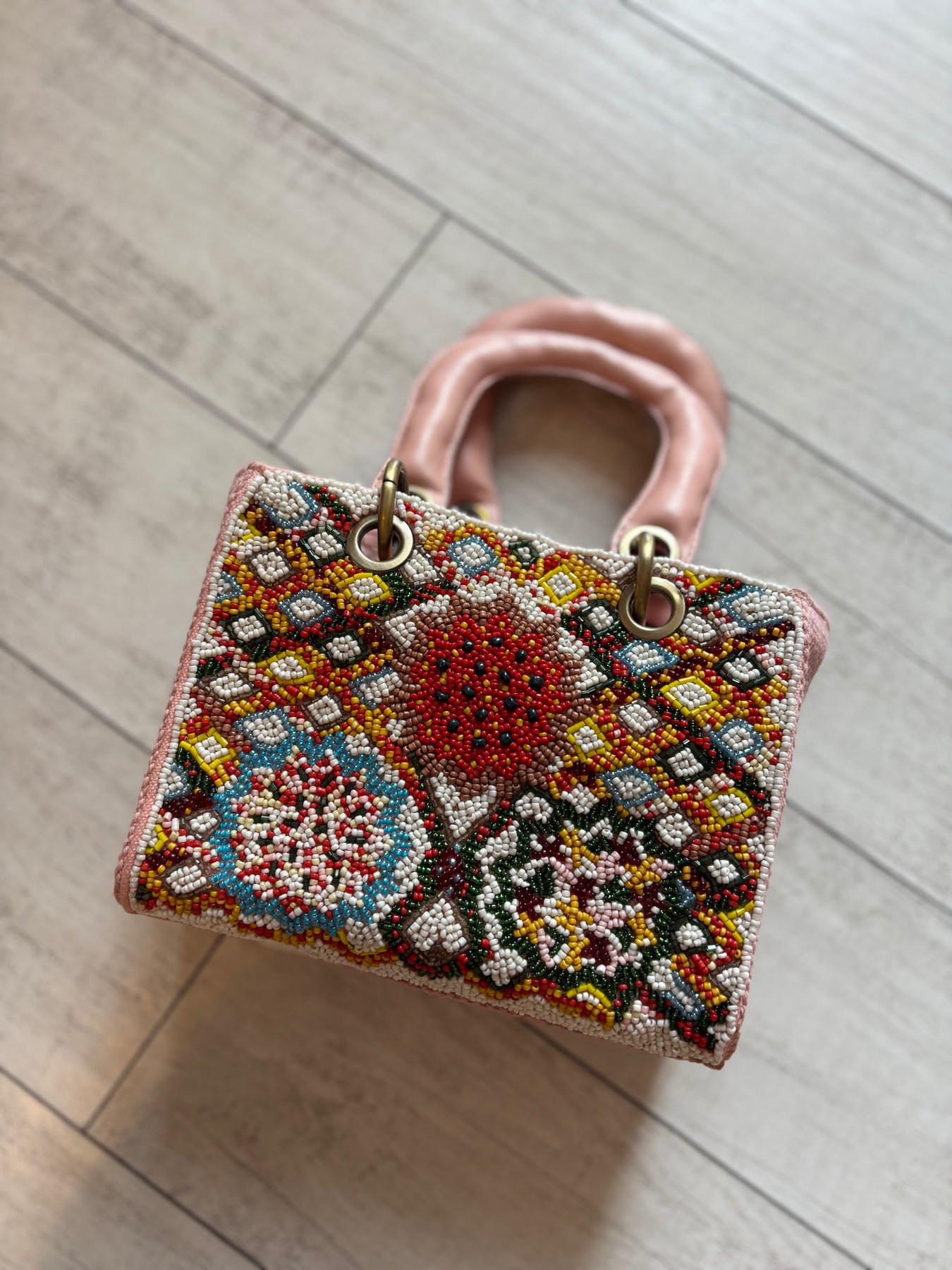 Hand Beaded Mini Tote * Embellished in front with Flowers on Criss Cross Design