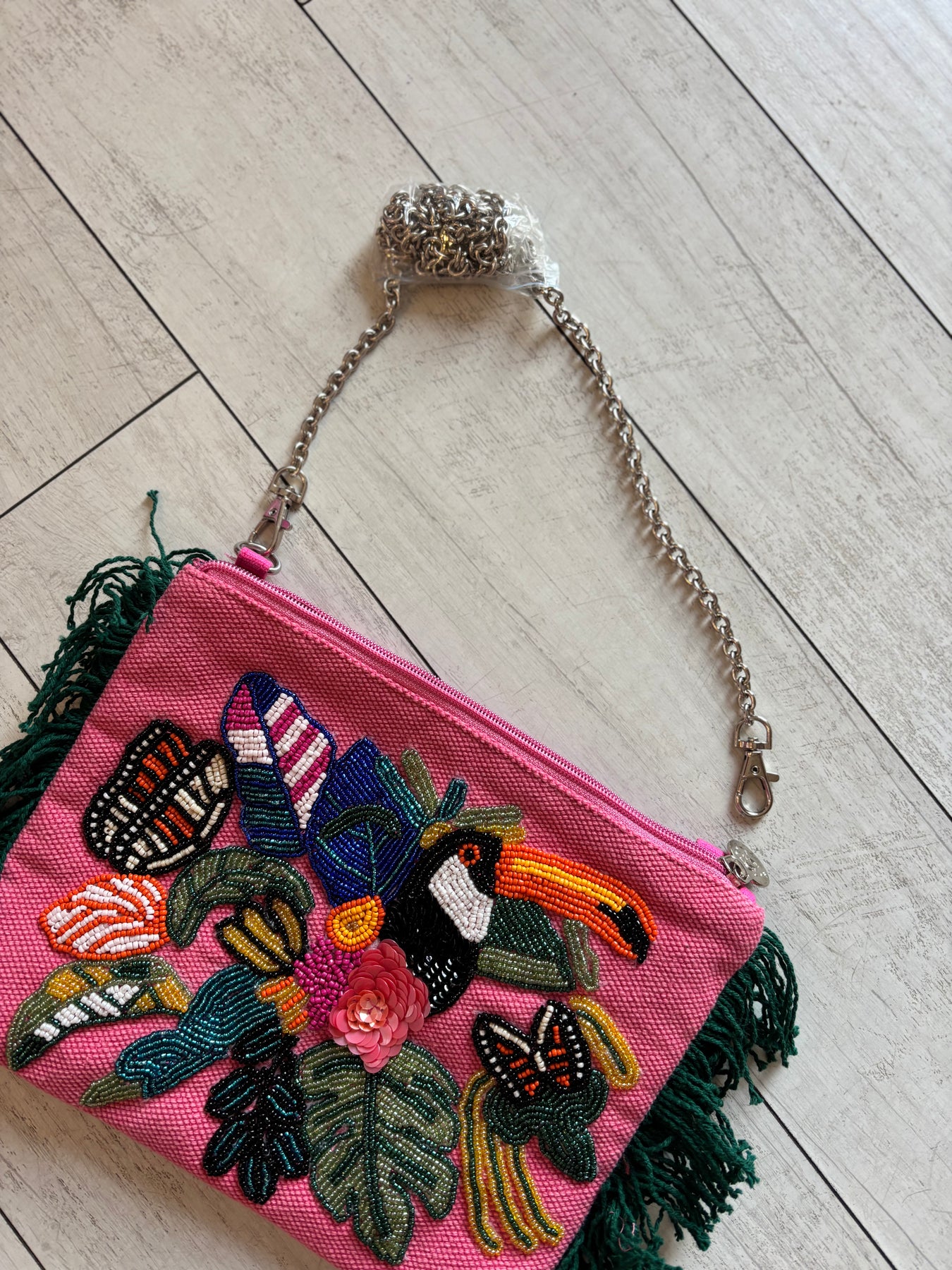Fringed Clutch with removable crossbody chain