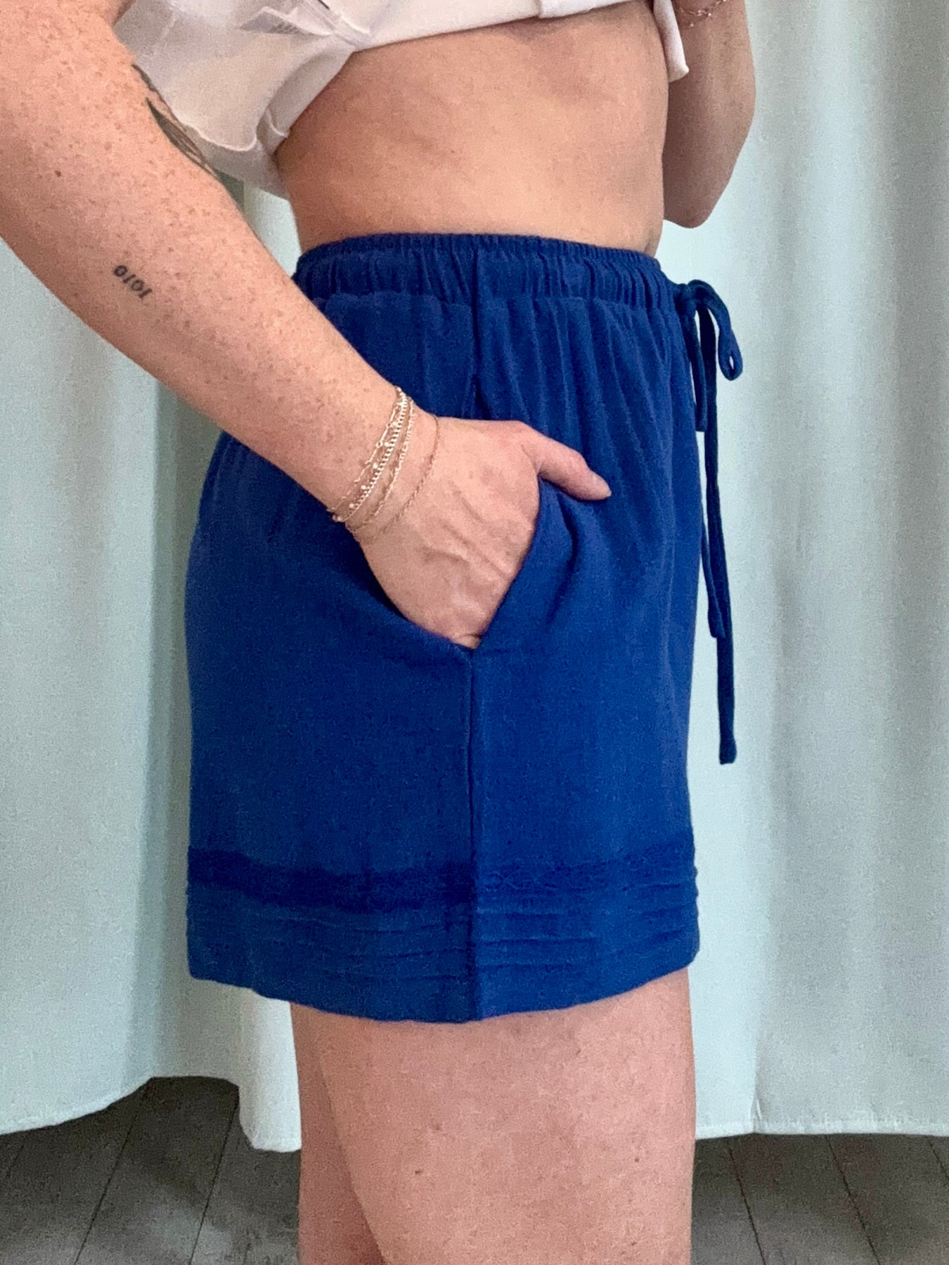 Meet your new go-to statement short. The Cobalt Shorts bring the perfect pop of color with a flattering high-waisted fit and tailored front pleats that elevate any look. Designed with functional pockets, adjustable tie waist and an easy, polished silhouette, these shorts effortlessly take you from casual daytime errands to dressed-up evenings.