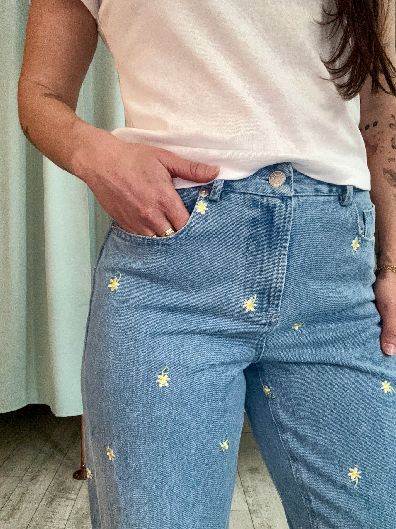 The Little Flower Jean is playful and polished with a slightly cropped leg and delicate embroidered flowers scattered throughout. These jeans strike the perfect balance between sweet and stylish, adding a touch of charm to your everyday denim. Think of them as your new go-to jeans for bringing a little joy to any outfit—dressed up, down, or somewhere in between.