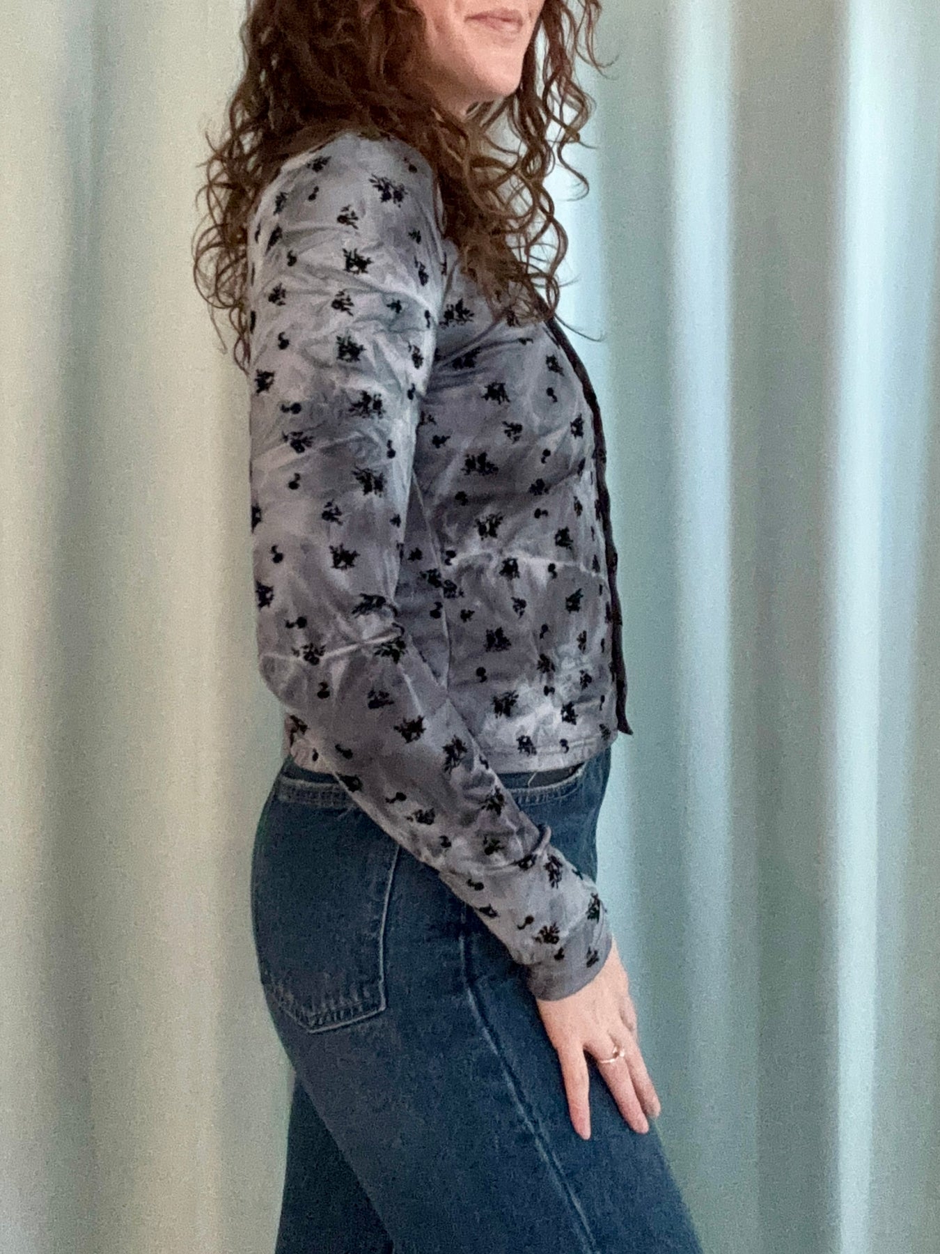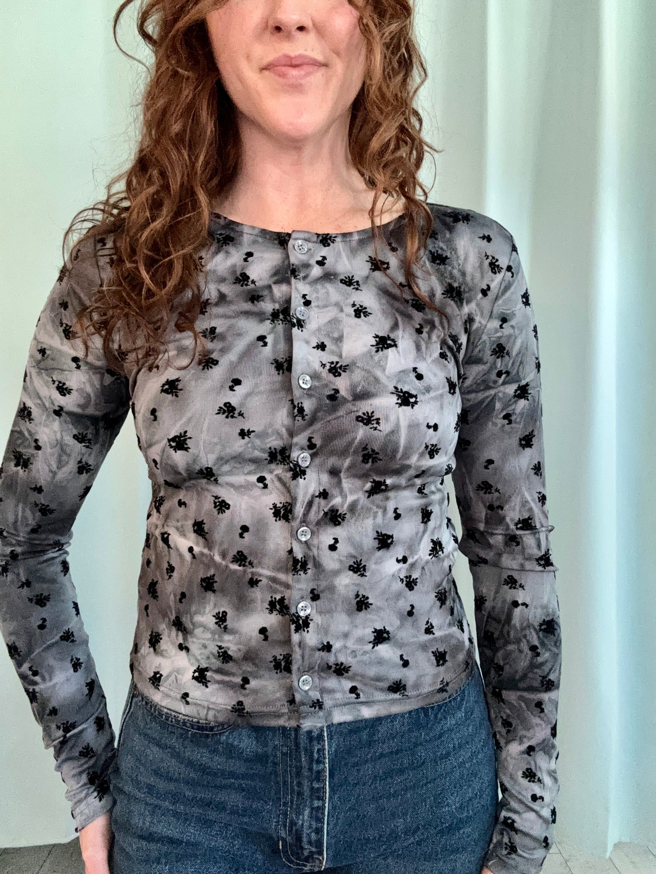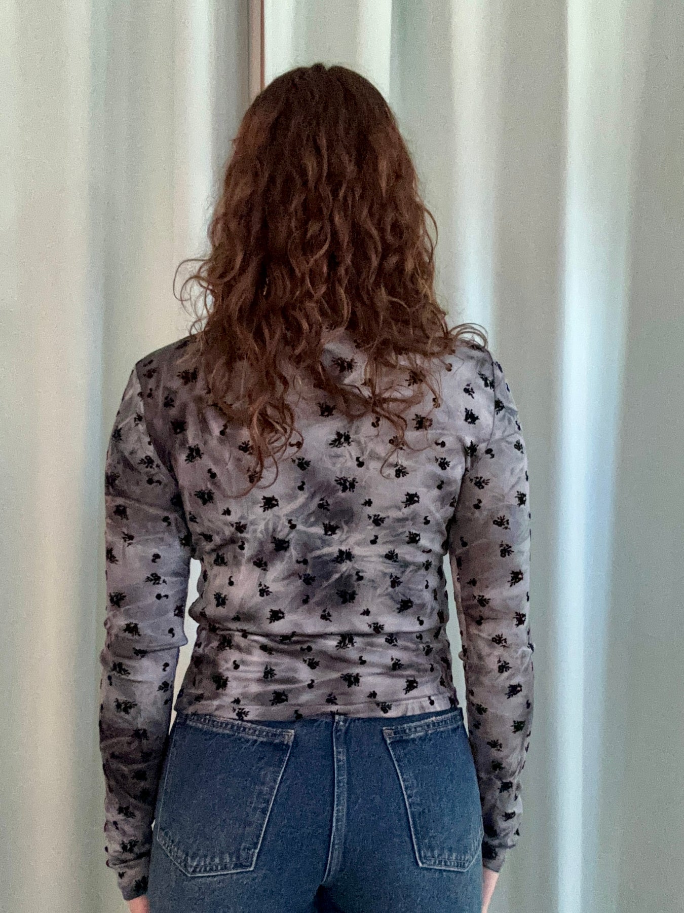 The Burnout Velvet Top is giving peak sultry sophistication. The sheer burnout fabric is overlaid with rich floral velvet accents, creating a dreamy, dimensional texture that feels both romantic and bold. Its curve-hugging fit adds a touch of drama, making it the perfect piece to balance with baggy black jeans for that effortlessly cool, high-low vibe. Textured, moody, and totally night-out chic.
