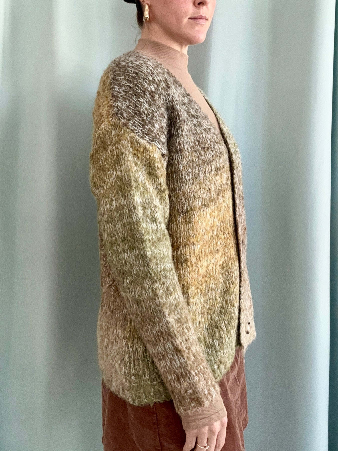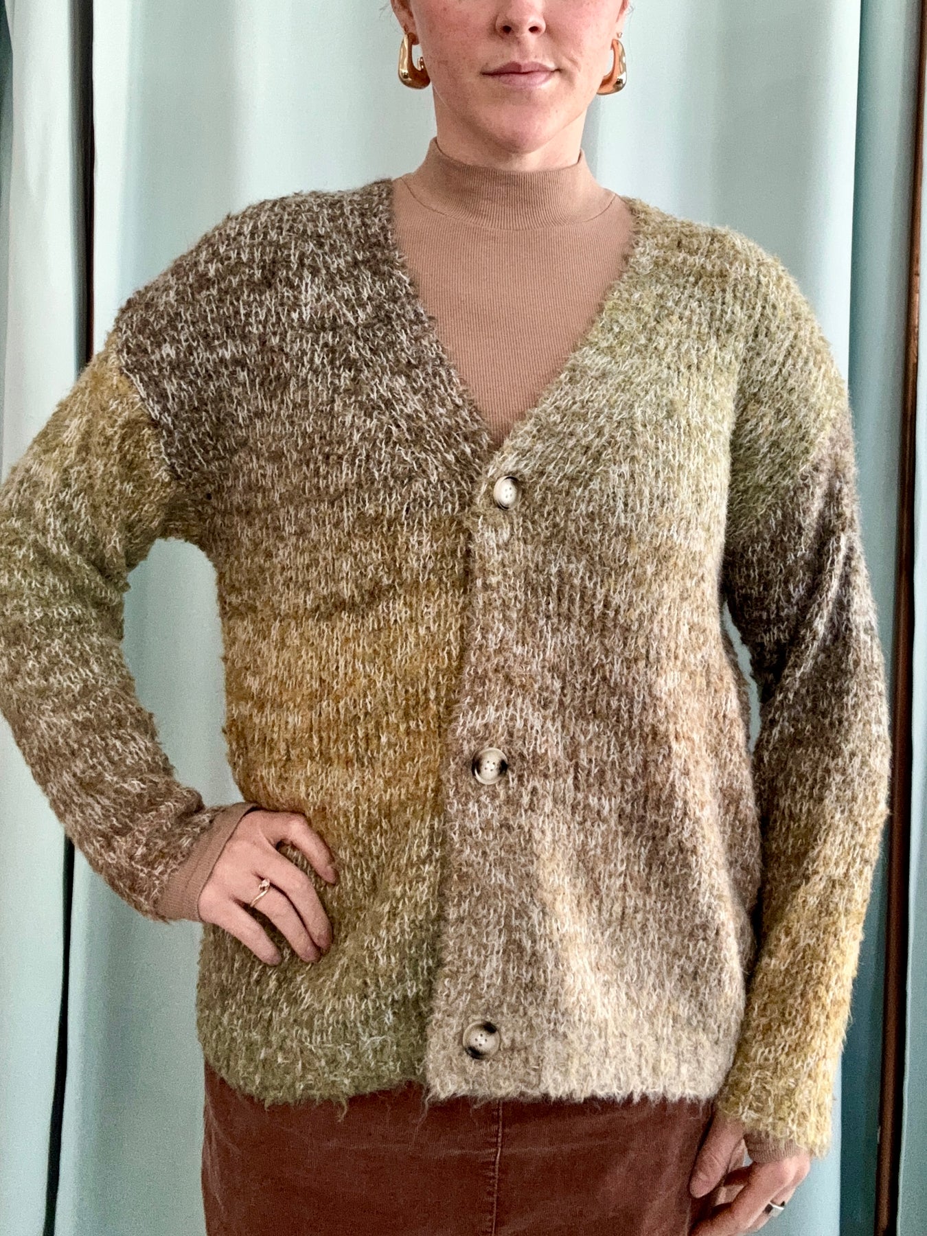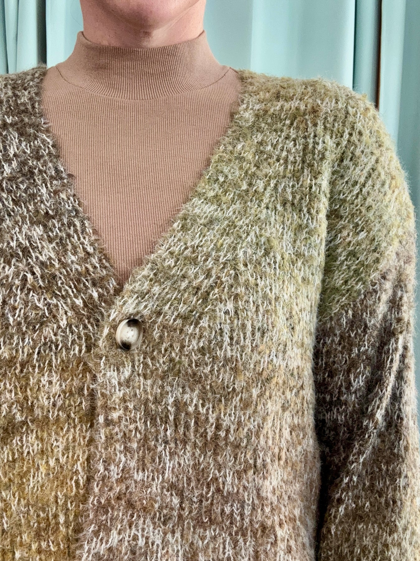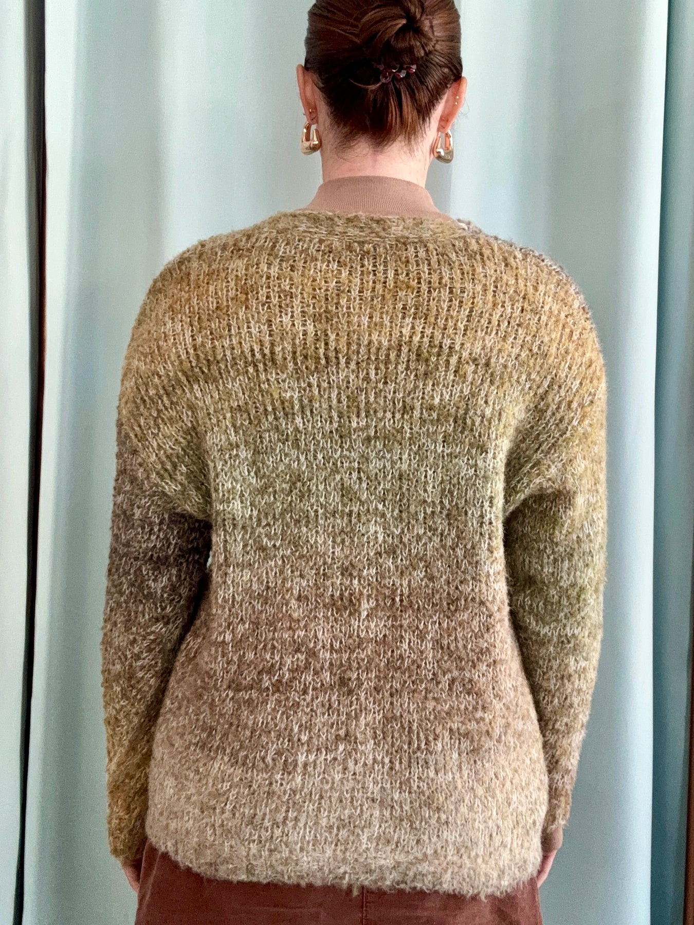 The Olive Ombre Knit sweater from Patterns and Pops features a stylish gradient design that transitions through earthy olive tones. It’s crafted with a cozy knit texture, making it ideal for layering during cooler weather. The ombre effect adds visual interest and a modern twist to a classic silhouette, perfect for casual outings or dressing up with accessories.