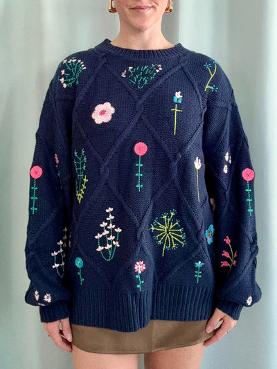 Embroider Navy Sweater