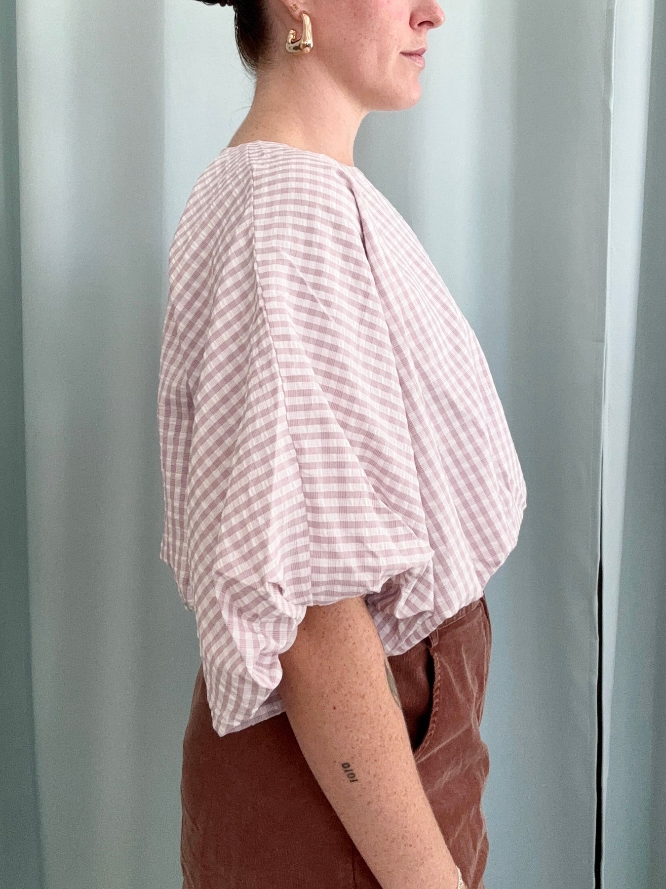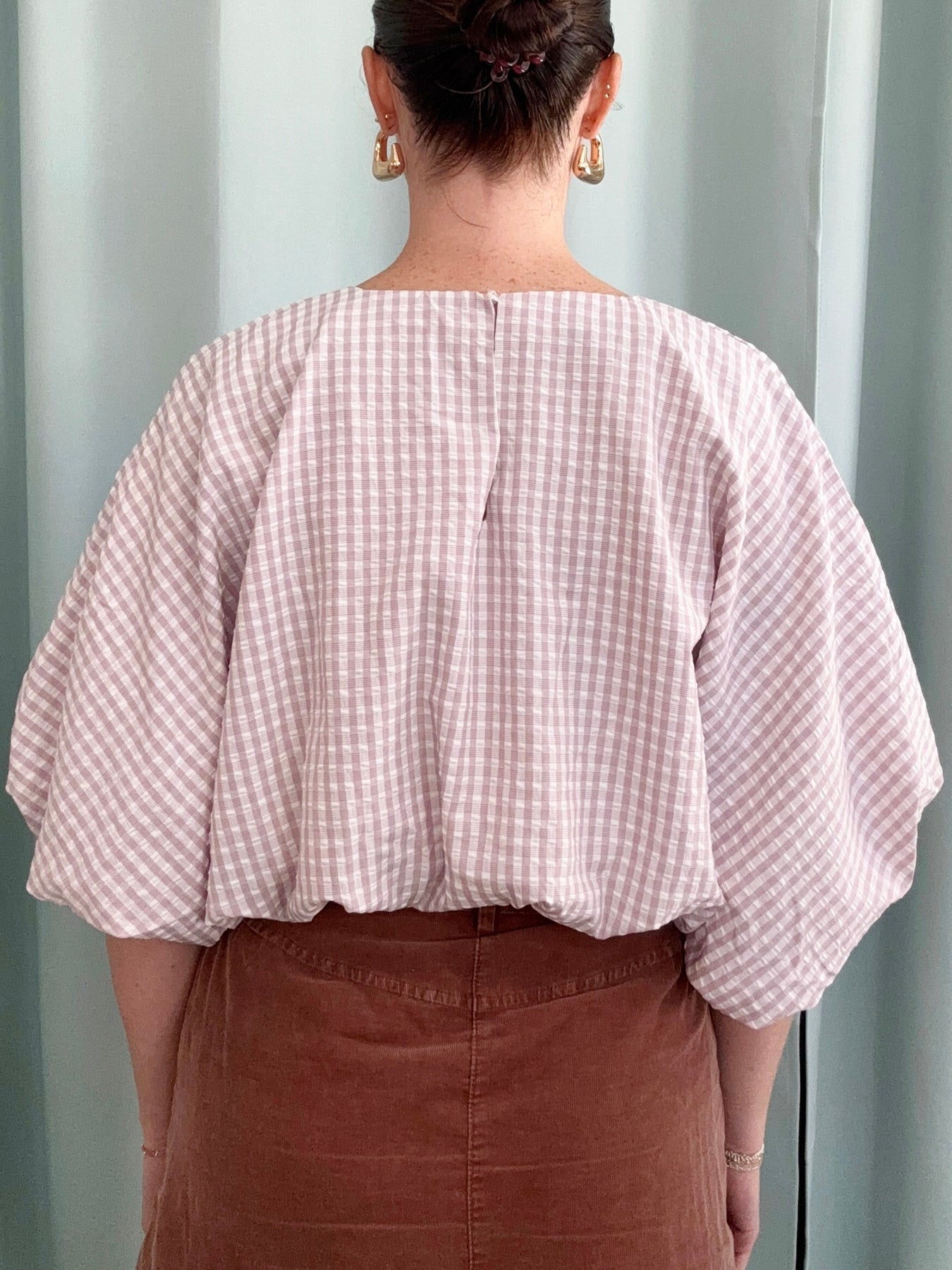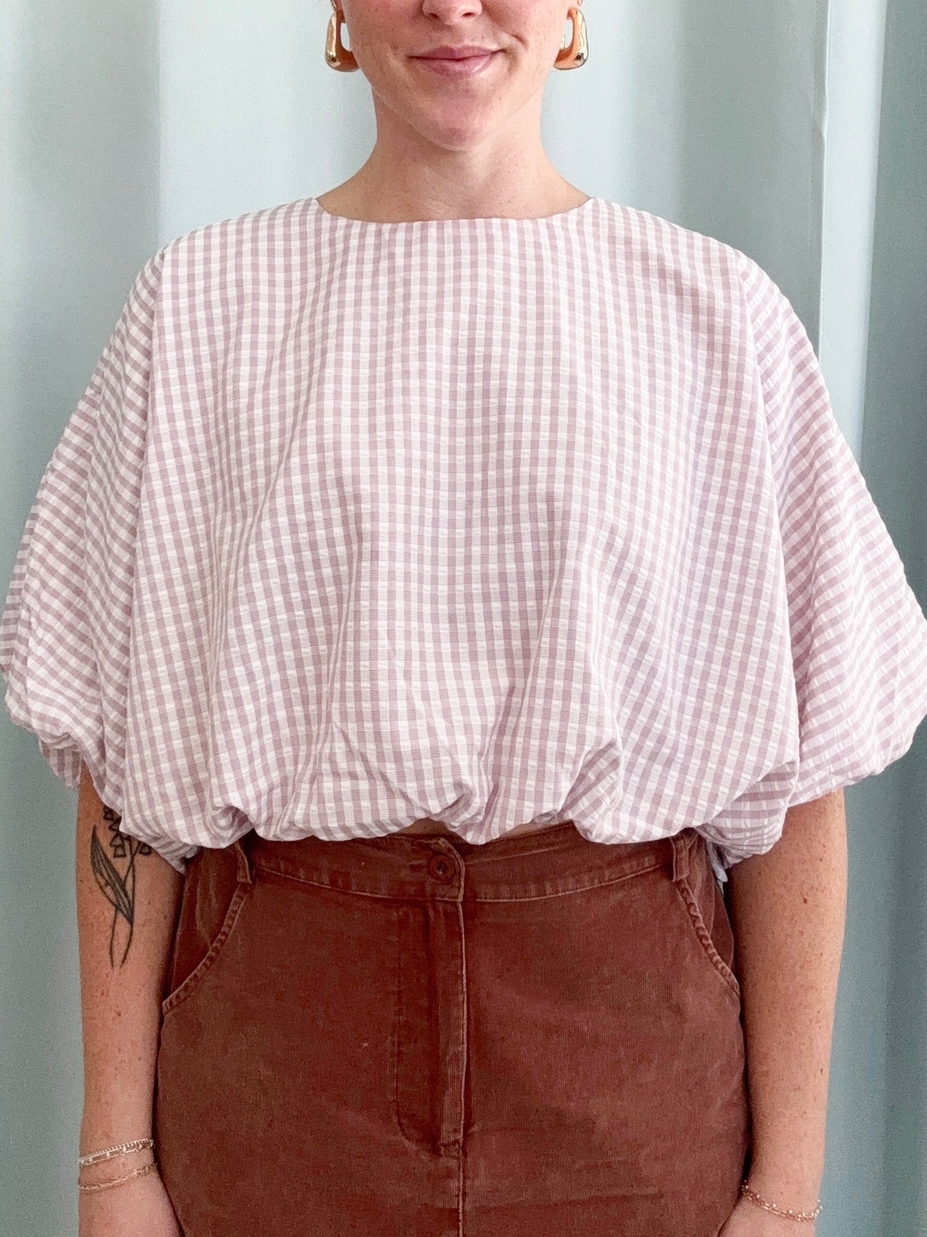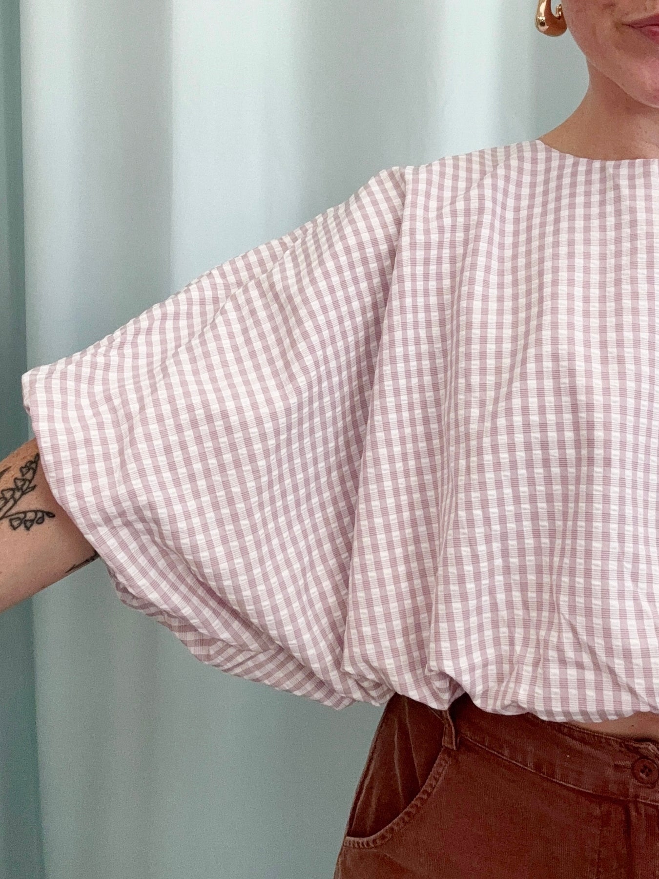 This dreamy gingham top brings all the volume with its bold balloon sleeves and playful cropped fit. Light lavender checks keep it sweet, while the dramatic silhouette makes it a total outfit-maker. Pair it with high-waisted denim, a sleek mini, or your go-to wide leg pants for a look that will be sure to turn heads!
