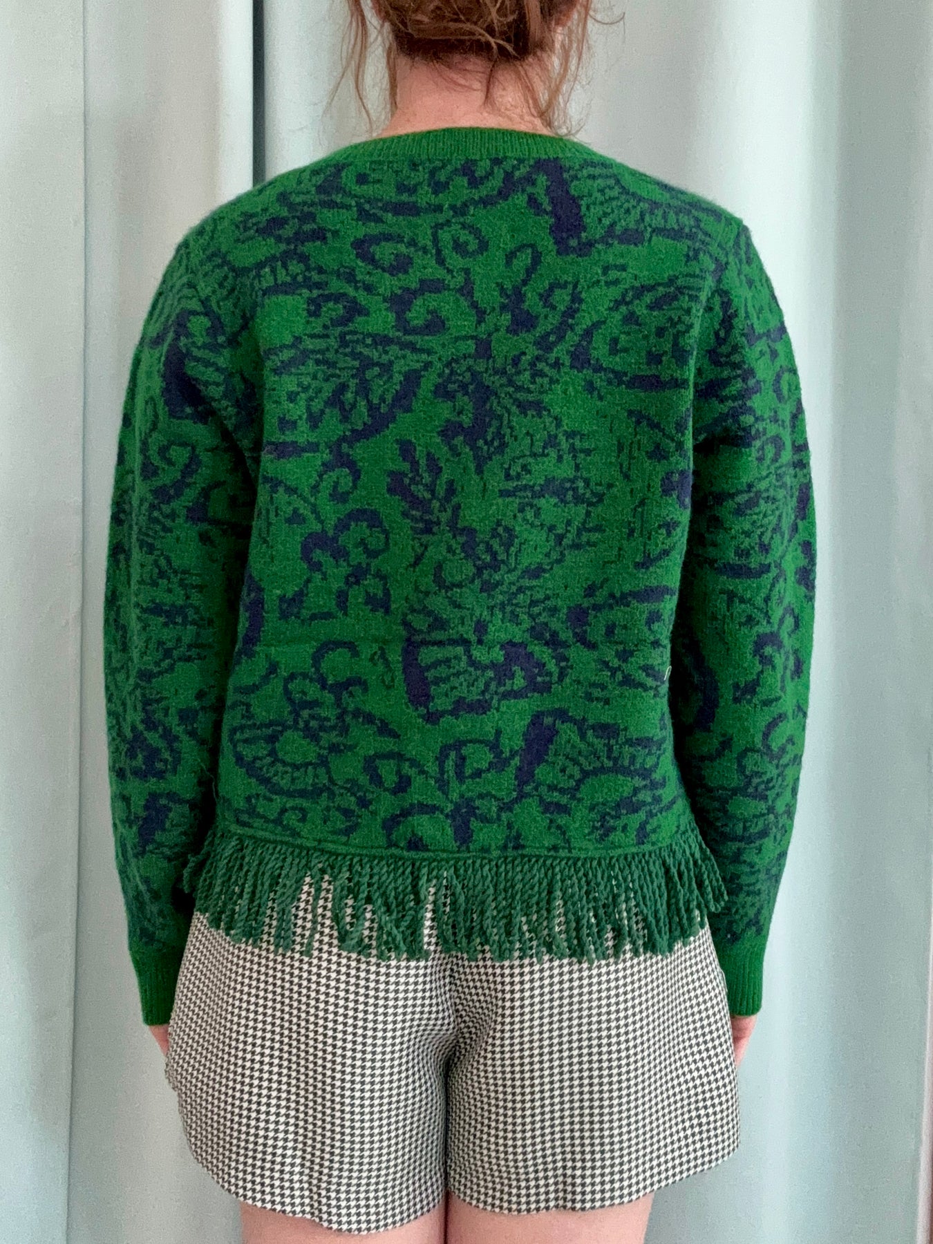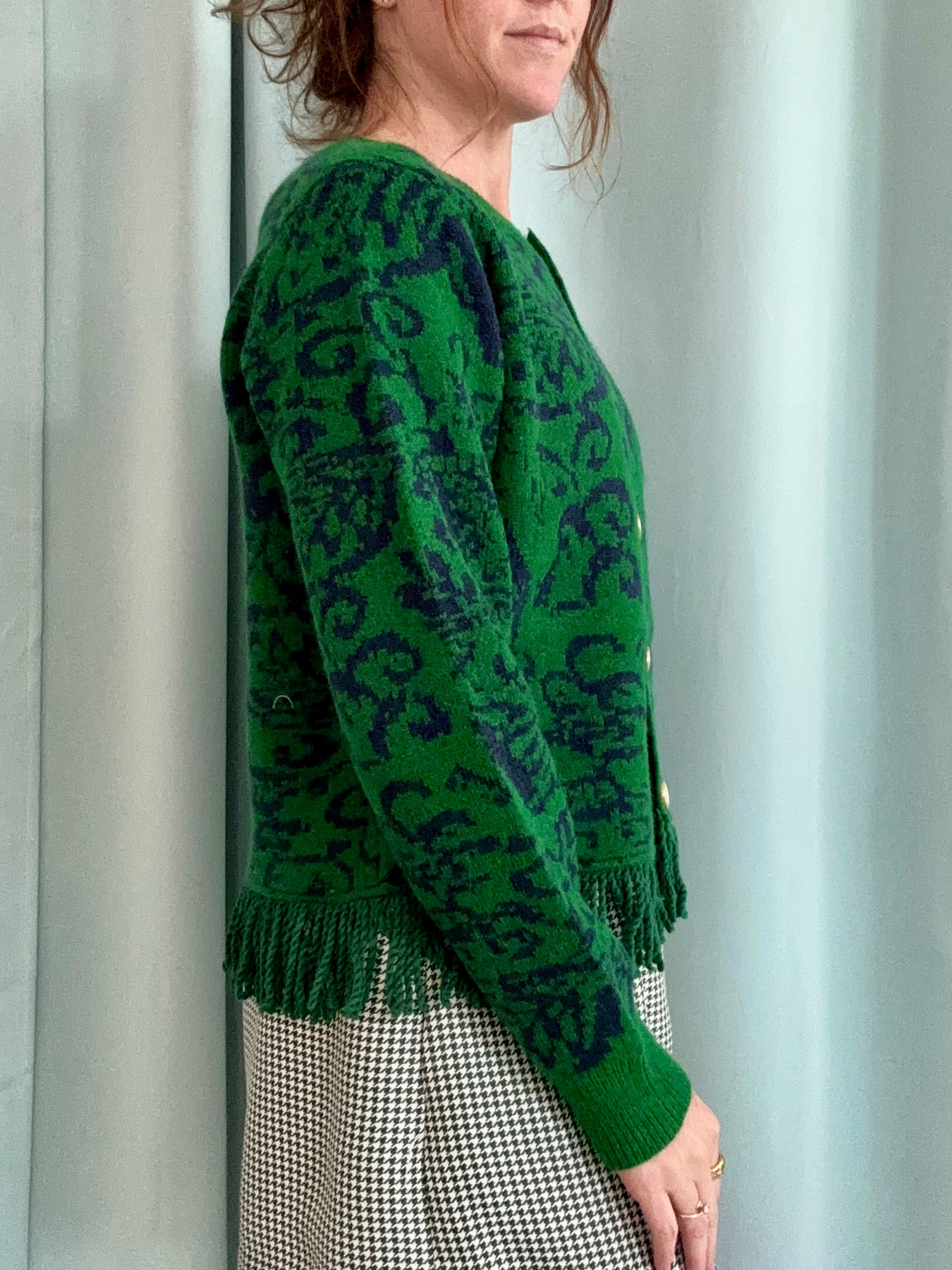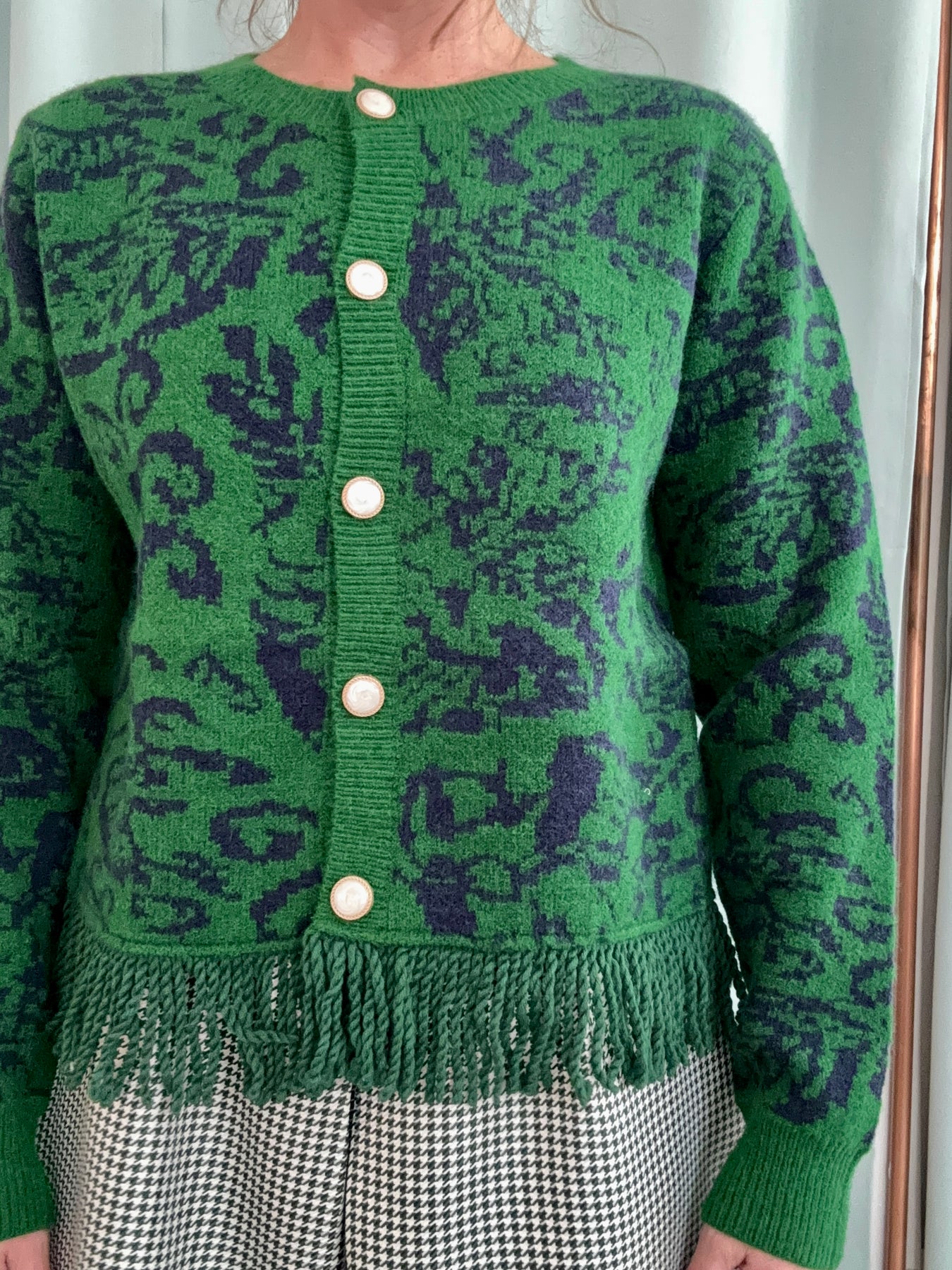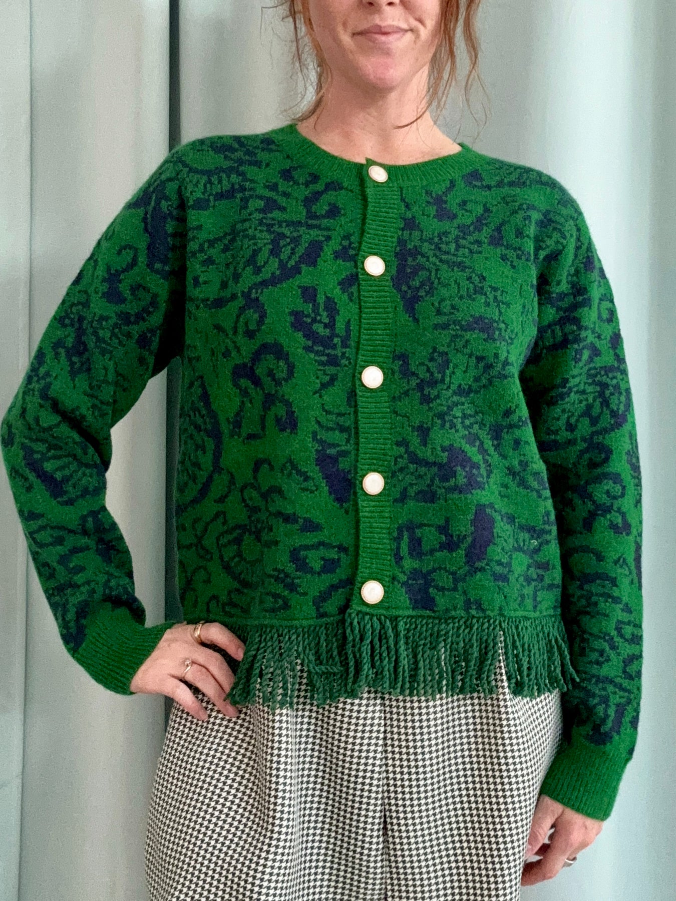 The Blaire Green Cardigan is bold, bright, and a total vibe. This green beauty brings major main character energy with navy-accented designs, playful tassels at the hem, and the chicest marble-style buttons. With just the right pop of texture and color, this sweater is everything you didn’t know your closet was missing.