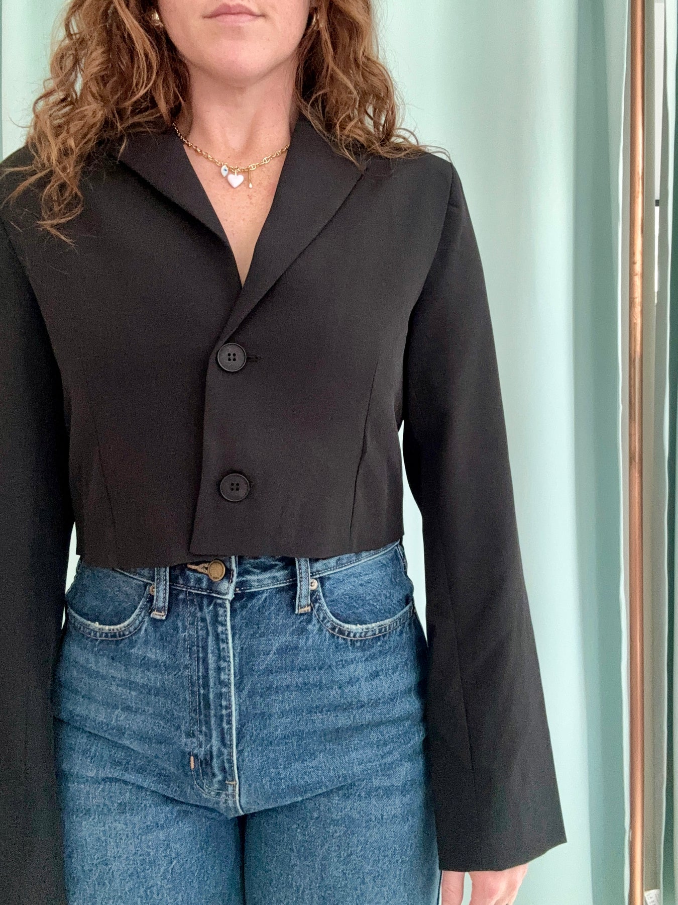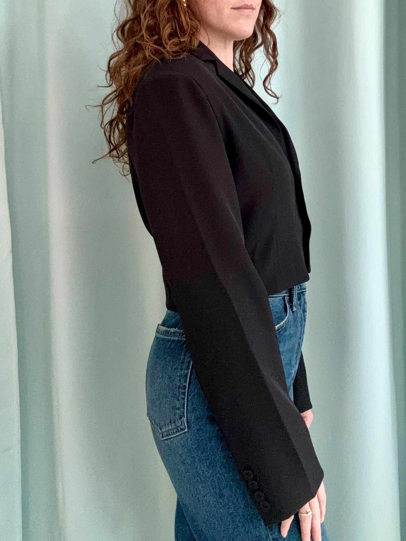Our Cropped Blazer in classic black is here to upgrade your fall layering game — one confident look at a time. With its tailored silhouette, subtle shoulder structure, and waist-skimming length, this piece is the ultimate combo of polished and effortless edge.