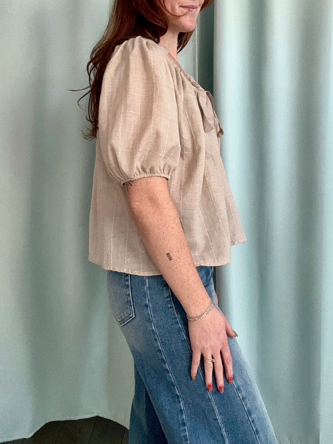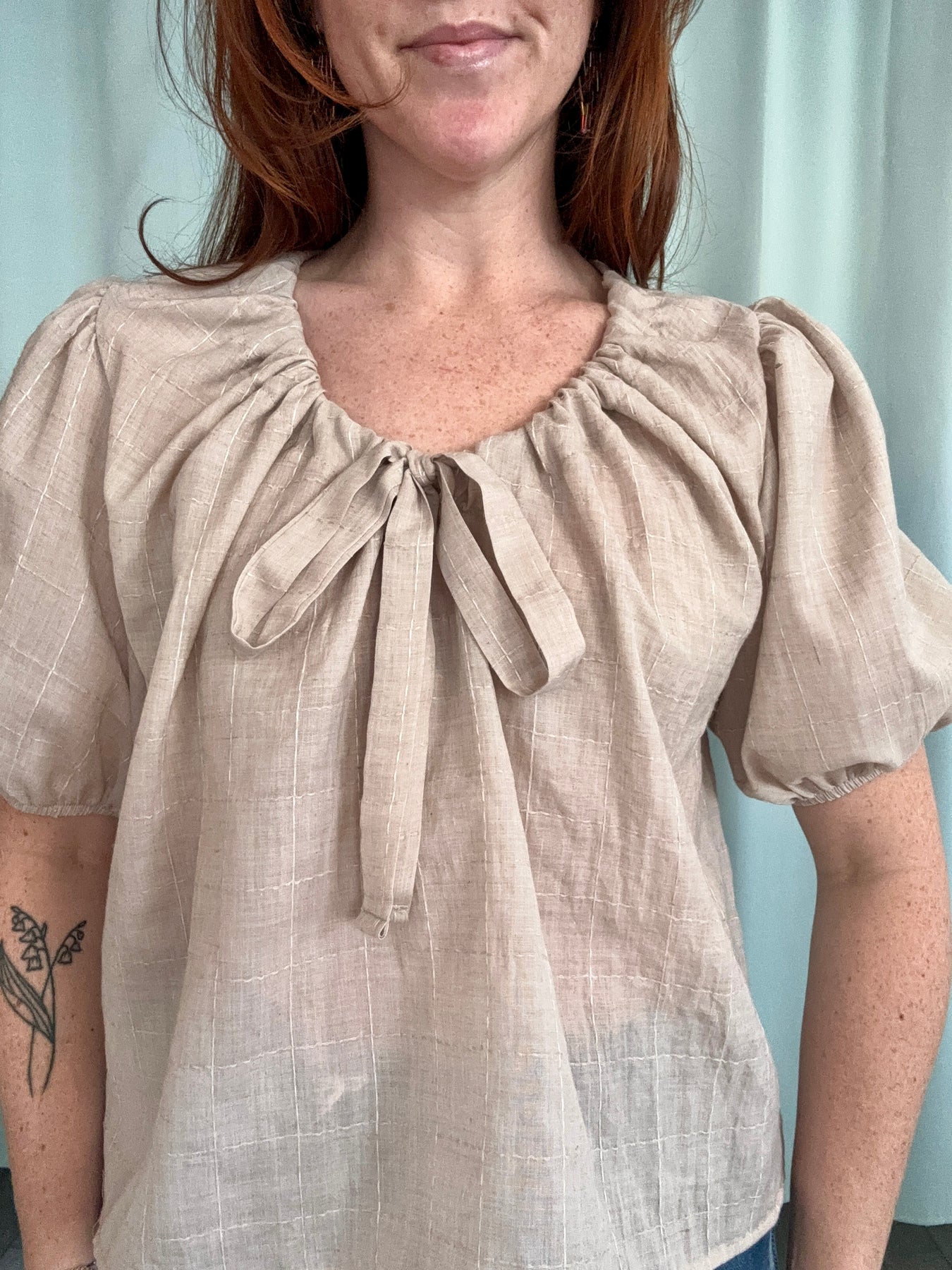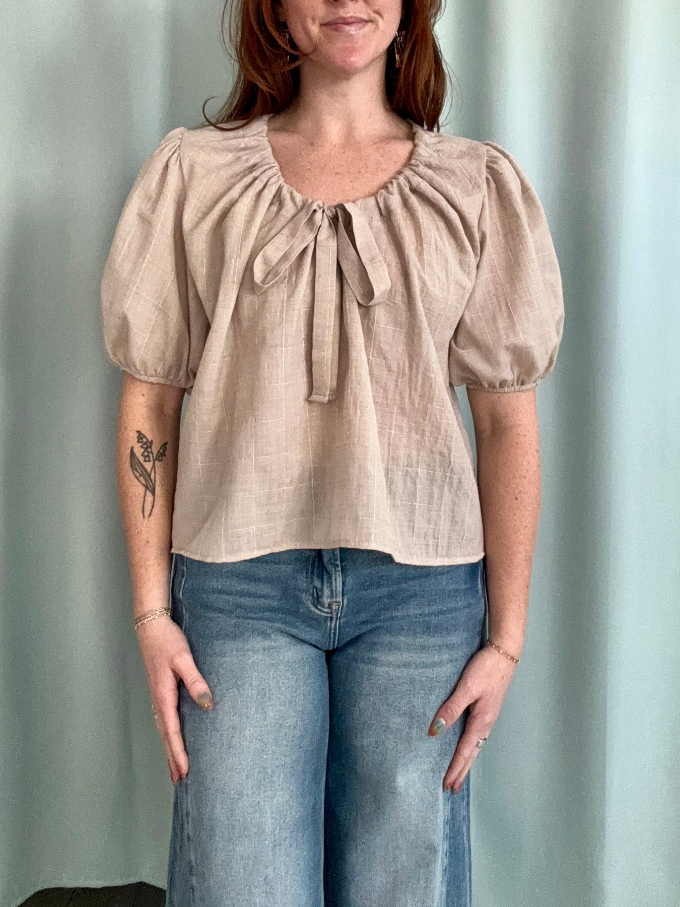 Taupe Tie Blouse