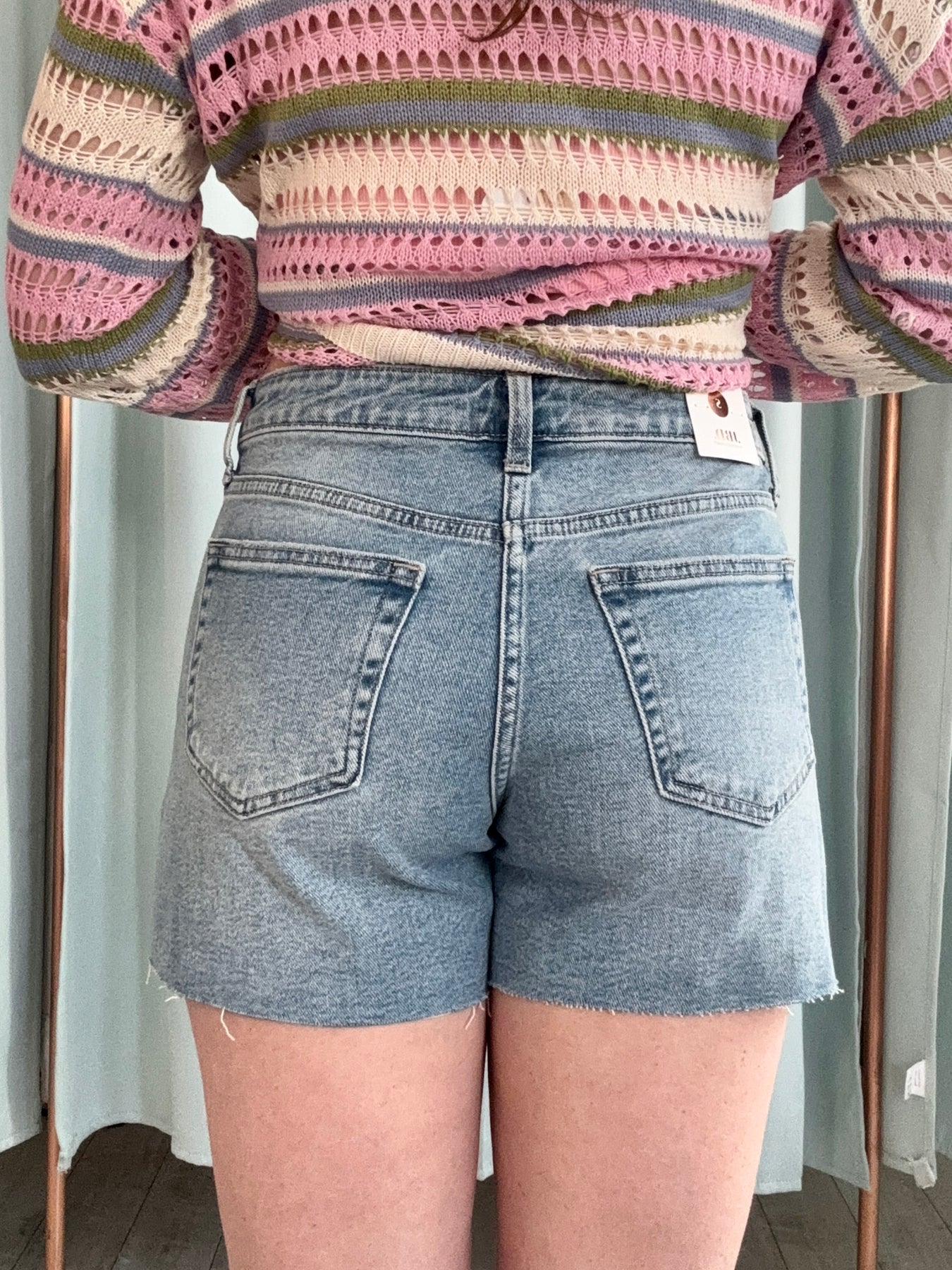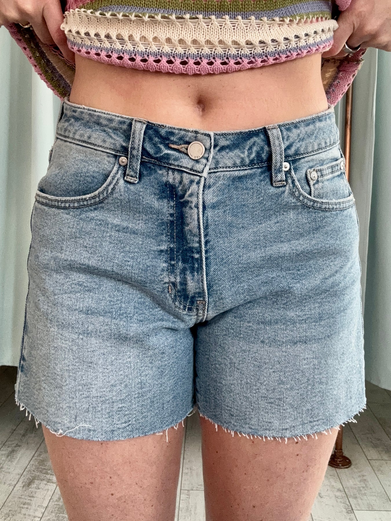 The 90’s Cutoff Blue Jean Shorts bring all the laid-back, vintage energy your summer wardrobe needs. Designed in a classic blue wash with that perfectly worn-in feel, they feature a flattering high-rise fit and raw cutoff hems for an effortlessly cool finish. Made for sunny days and spontaneous plans, these shorts pair perfectly with a simple tank, an oversized button-down, or your favorite graphic tee.