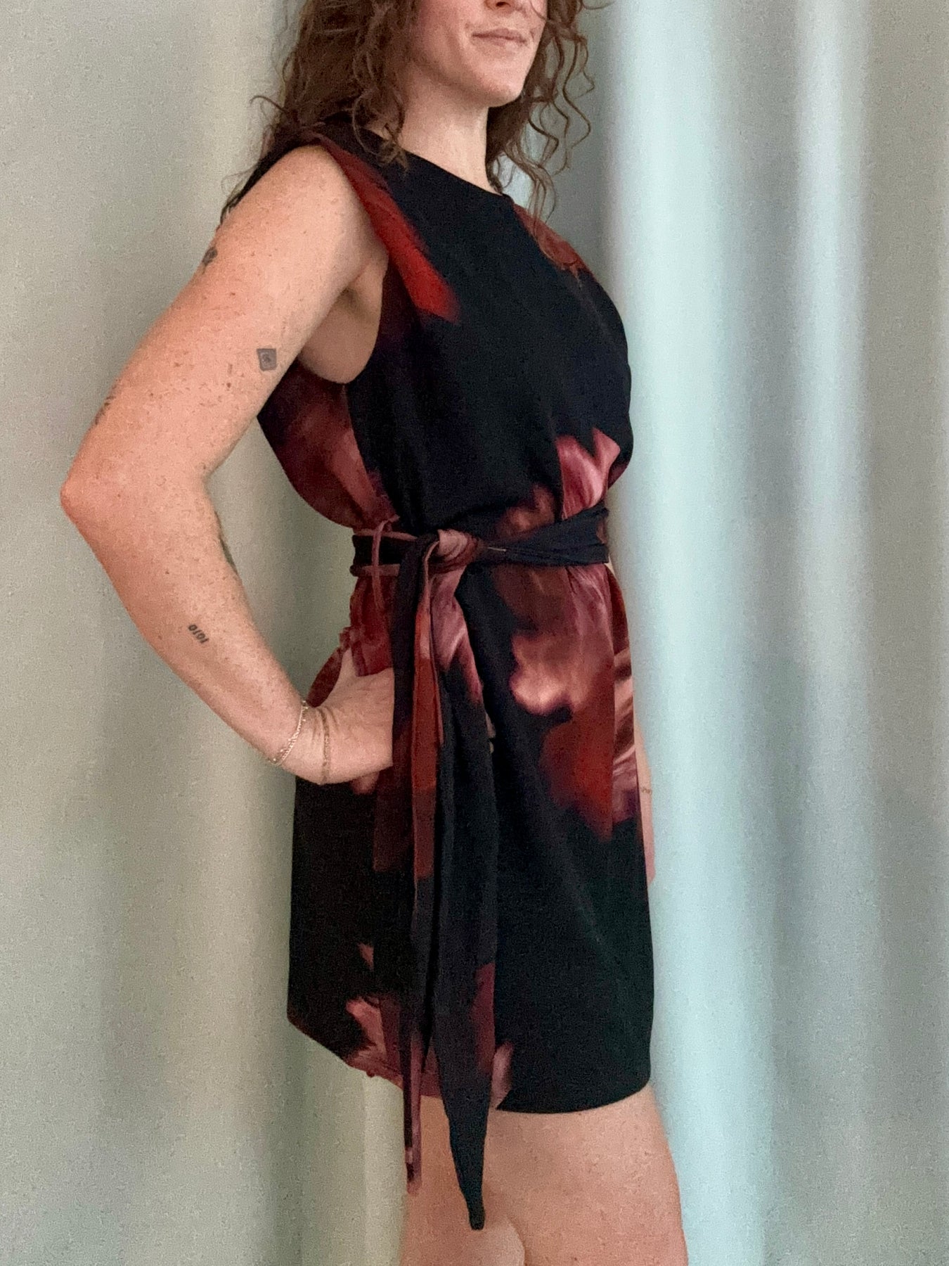 The silhouette is chic and flattering, featuring a unique tie-waist detail that cinches you in just right and adds a touch of playful structure. The mini length keeps it fun and flirty, while the soft, easy-to-wear fabric moves with you from dinner to dancing.