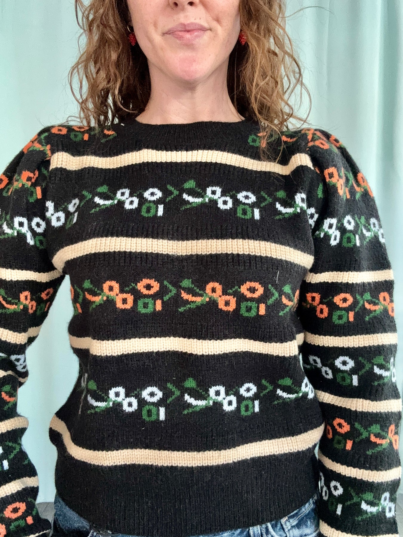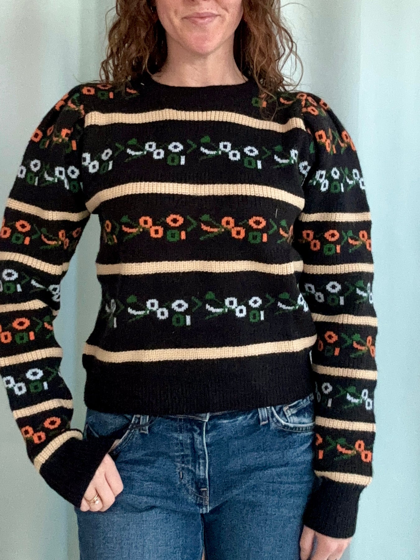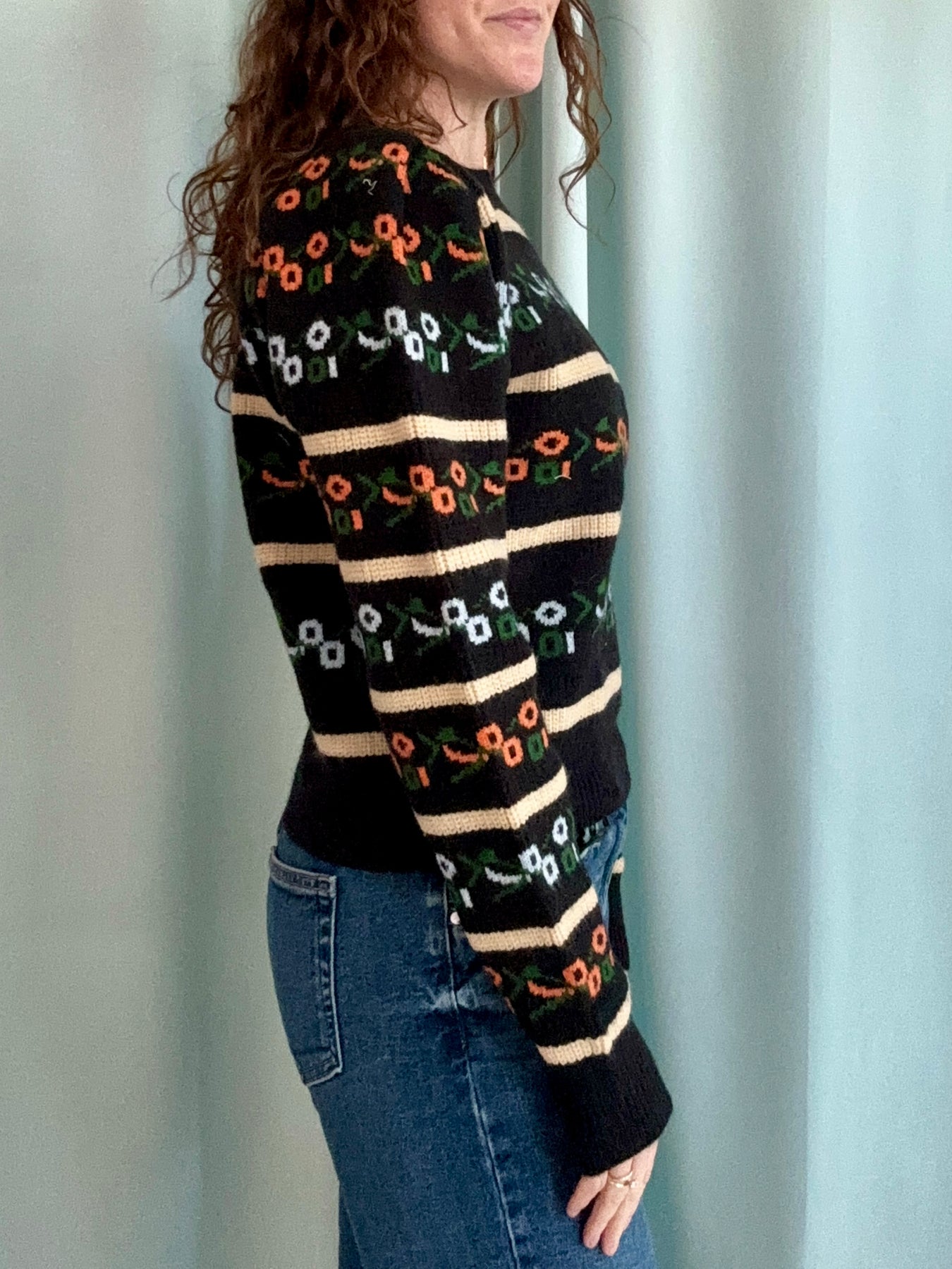 Cozy yet statement-making, this sweater pairs effortlessly with denim for an easy everyday look, or styled with a midi skirt for something a little more elevated. Unique, colorful, and full of personality, this is the piece that turns a simple outfit into something special.