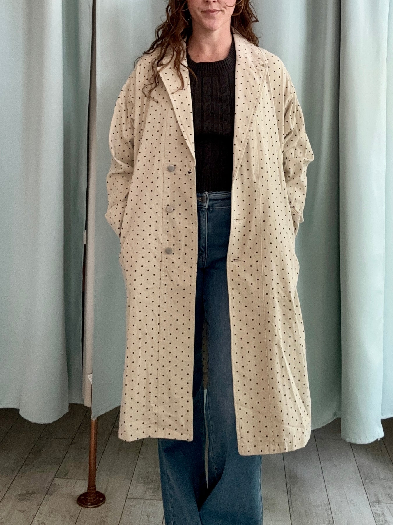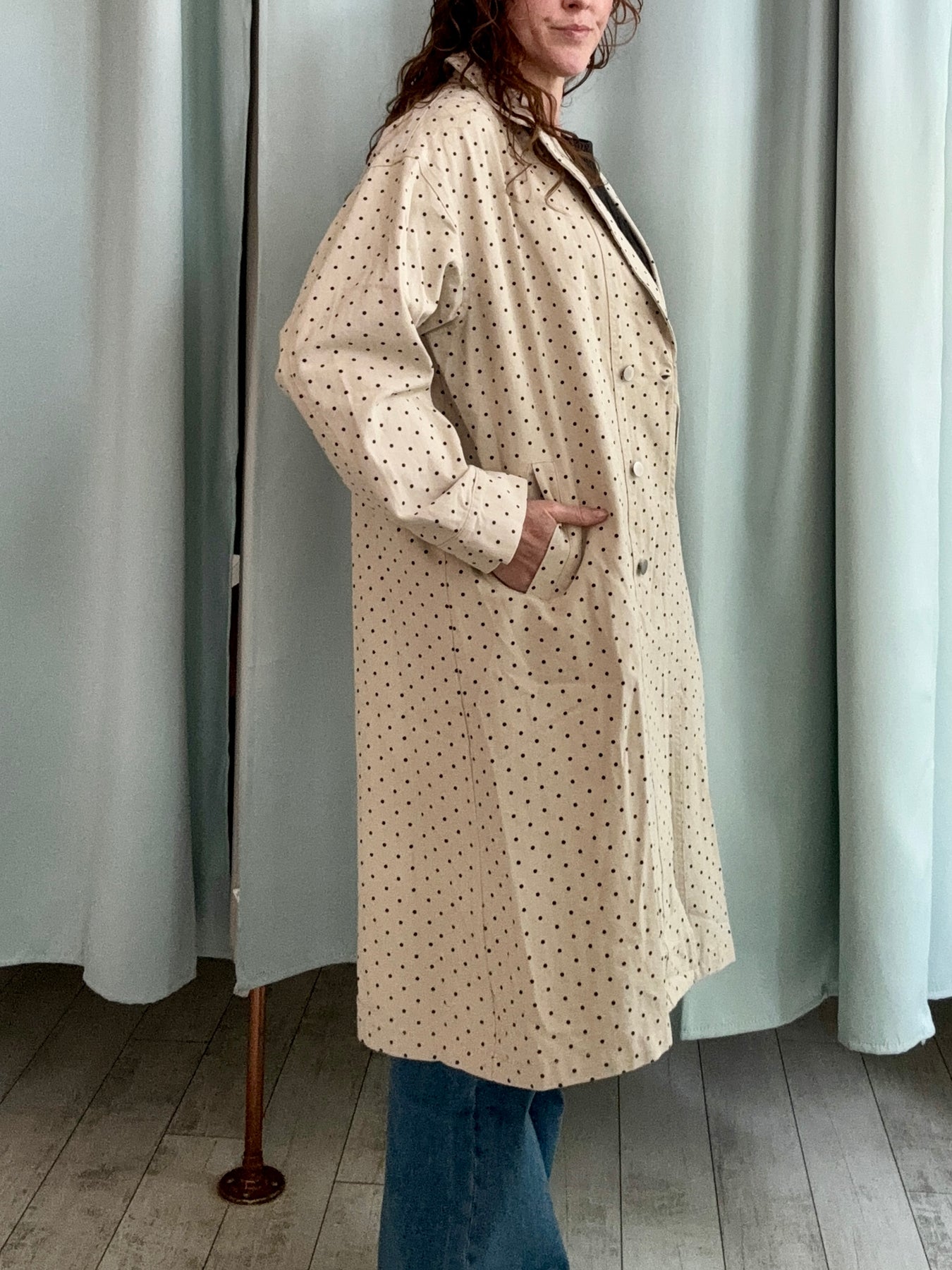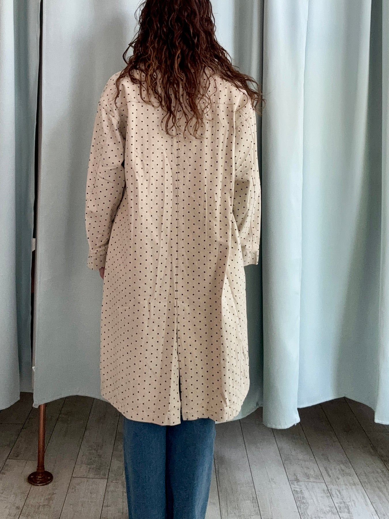 Chic meets everyday ease in the Taupe Dot Trench, a versatile outerwear piece that takes classic trench styling and adds a subtle, playful twist. With its soft taupe hue and timeless silhouette, this trench layers beautifully over everything from casual denim to elevated fall looks.