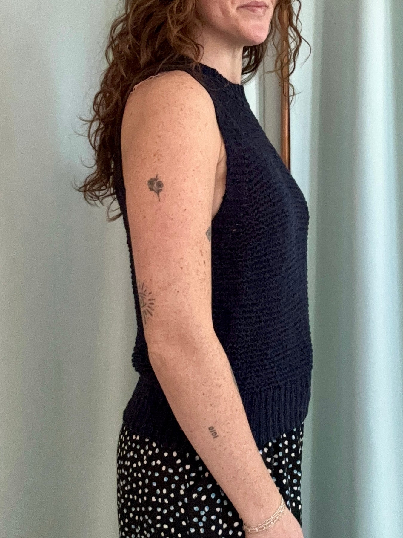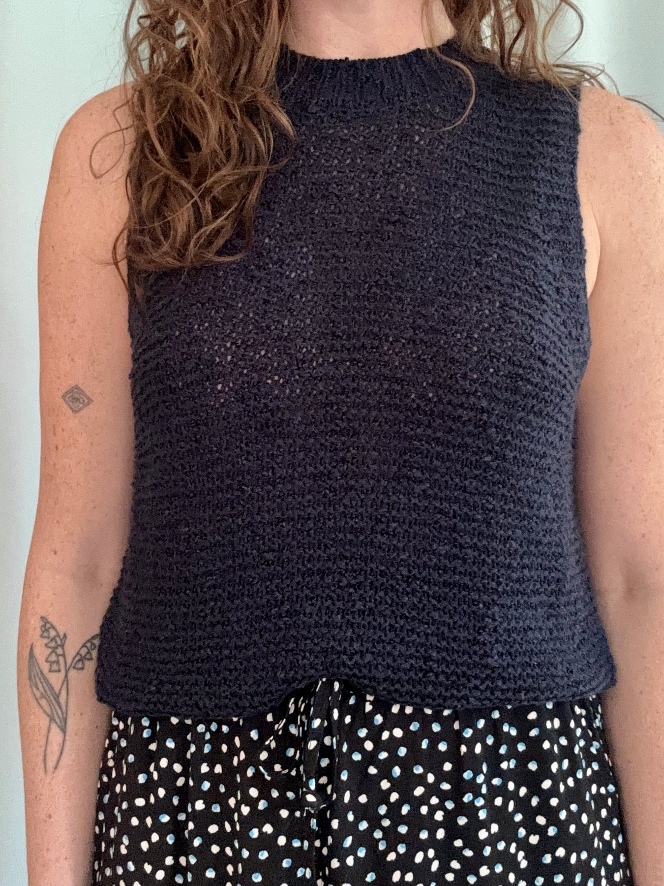 A forever staple with a polished feel — this navy knit Vest is the kind of piece you’ll reach for on repeat. Designed with a ribbed collar and matching ribbed bottom hem, it has that subtle structure that elevates a classic silhouette. The fabric is soft and lightweight, yet still has a substantial feel that drapes beautifully and holds its shape. It’s easy to wear on its own in warmer months or layered under a jacket when temps cool down. Style it with tailored trousers for a clean, put-together look or keep it casual with denim and sandals for effortless everyday wear.