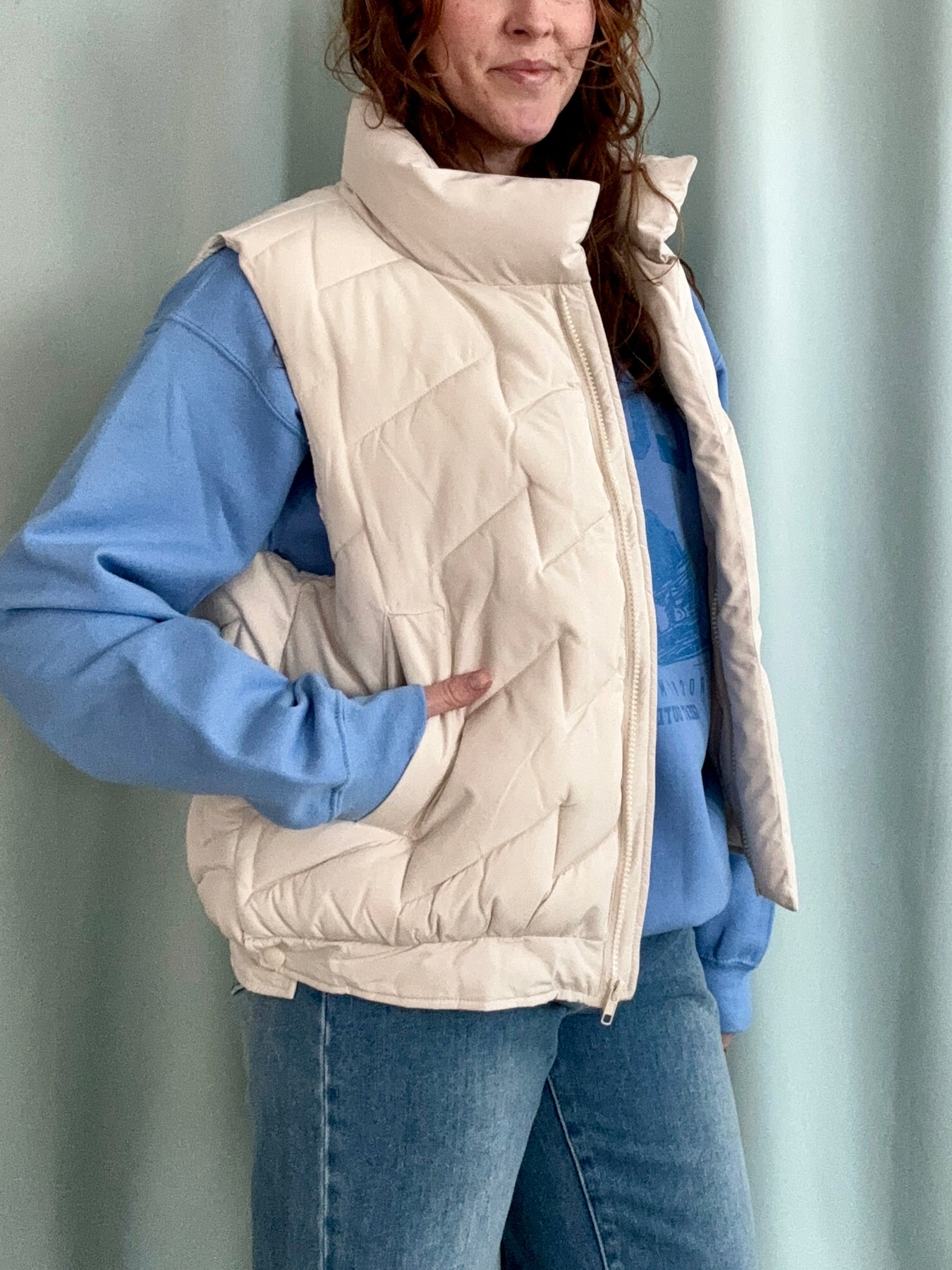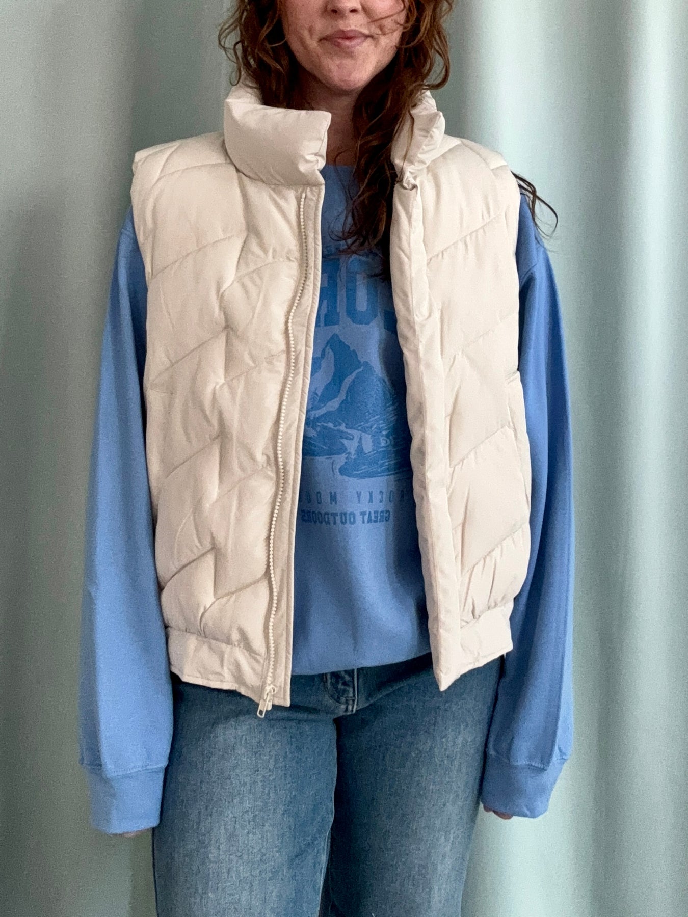 This Cream Puffer Vest is the perfect layer for adding warmth without the bulk. Its soft, cloud-like quilting feels lightweight yet cozy, making it ideal for crisp mornings, afternoon errands, and everything in between. The creamy neutral tone pairs effortlessly with knits, flannels, tees, and all your go-to denim. Designed with a flattering, easy-to-style silhouette, it zips up smoothly for extra warmth and looks just as cute worn open for a relaxed, casual vibe.